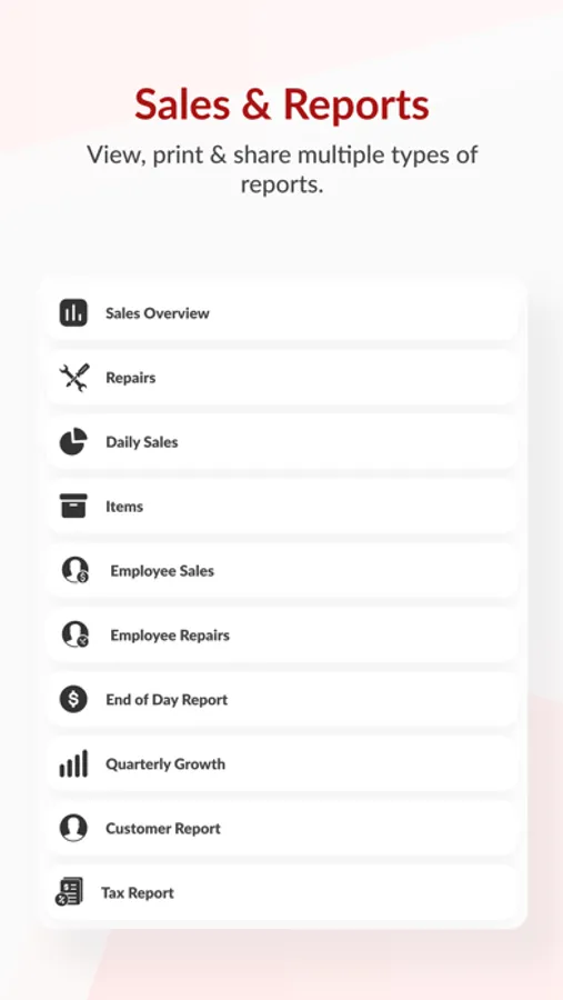 - Insightful Reports: A simple click delivers comprehensive insights into sales, repairs, and inventory.
