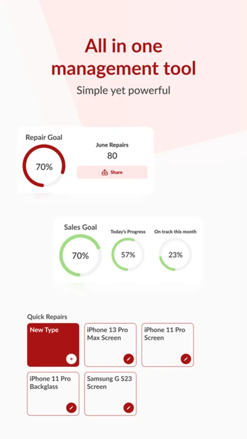 - Actionable Business Metrics: From sales goals to repair targets, monitor your business vitals with smart analytics.