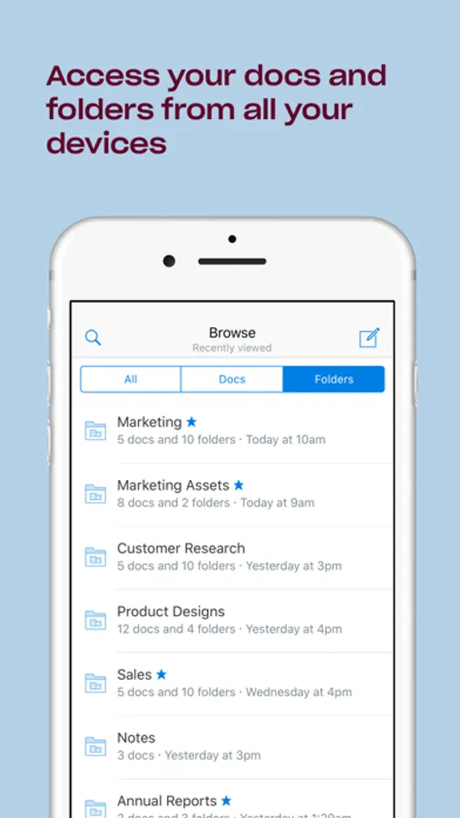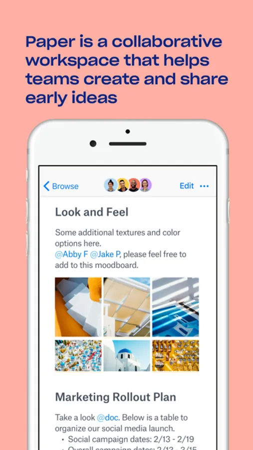 Create new docs or edit existing ones, and share them with your team right from the app, so you can capture inspiration wherever you are.