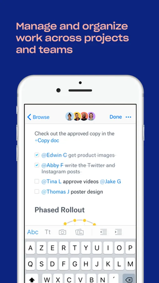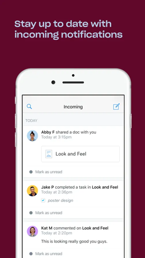 See everything that’s incoming from your team—like comments, shares, and @mentions—so you can catch up while on the go.