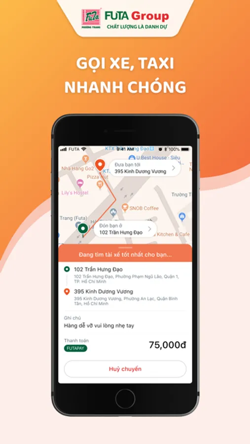 FUTA Taxi, Car, Motorbike: Provide services to connect between passengers and taxi drivers, Cars in the city with knowing in advance the cost of the trip.