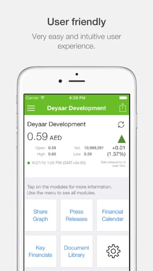 The Deyaar Investor Relations app will keep you up-to-date with the latest share price data, stock exchange news releases, IR calendar events and much more.