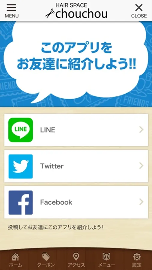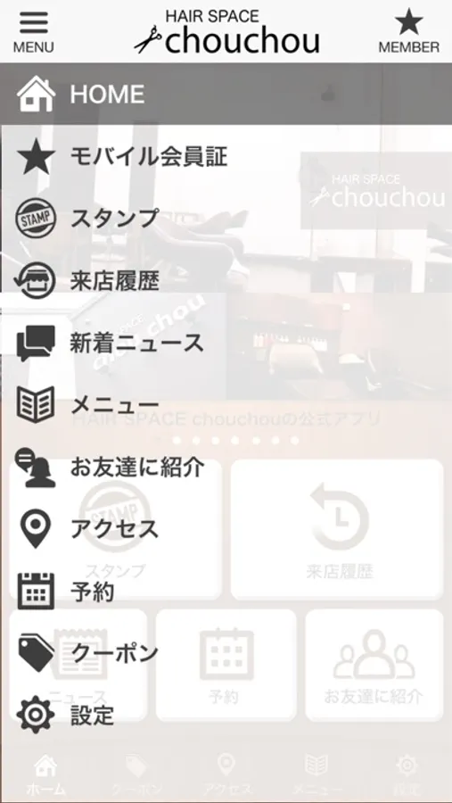 このアプリでは、chou chouの色々な情報やアプリユーザー限定のお得なサービスが手に入ります!