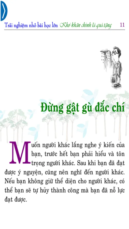 Đôi khi, những điều mới mẻ, kỳ lạ lại đến từ những khoảnh khắc rất bình dị. “Trải nghiệm nhỏ bài học lớn (Small experience, big lesson)” được thể hiện dưới những câu chuyện rất đỗi đời thường của cuộc sống. Mỗi câu chuyện là một bức thông điệp giản đơn mà cuộc sống muốn gửi đến bạn. Chúng như những đóa hoa nhỏ bé nhưng lại tiềm ẩn vẻ đẹp và hương thơm kỳ diệu, tô điểm cho cuộc sống thêm phần sinh động và đáng yêu.