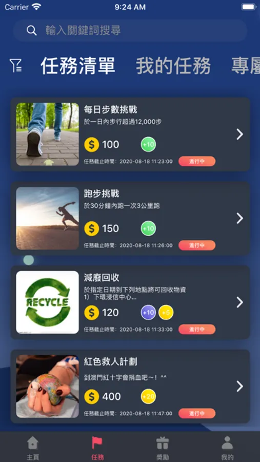 Go Go Goal users could freely select tasks which they would like to challenge from the list. After successfully completed these tasks, users would gain certain amount of coins correspondingly. Those coins could be used to exchange different kinds of rewards from the prize list.