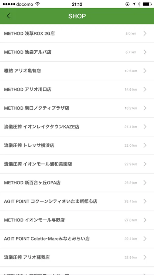 地域からショップを検索したり現在地から最寄りのショップを検索することができます。