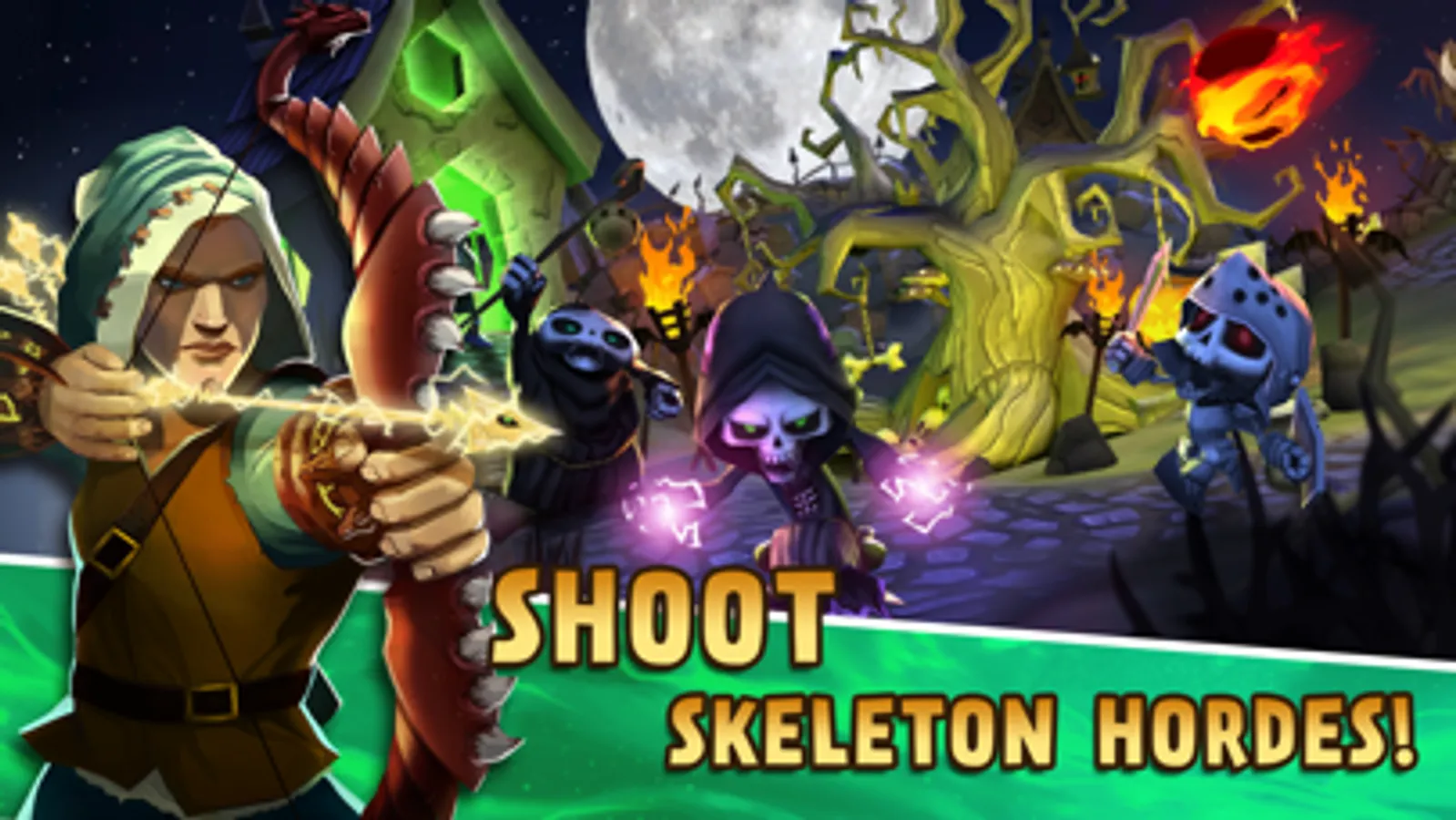 Skulls are coming! And you are the only hero in the realm. Take your bow and arrows, aim from a tower and shoot your enemies to stop every wave! The future of your realm depends on you. Fight the creeps and protect the castle stronghold in epic strategy battles full of fantasy and action.