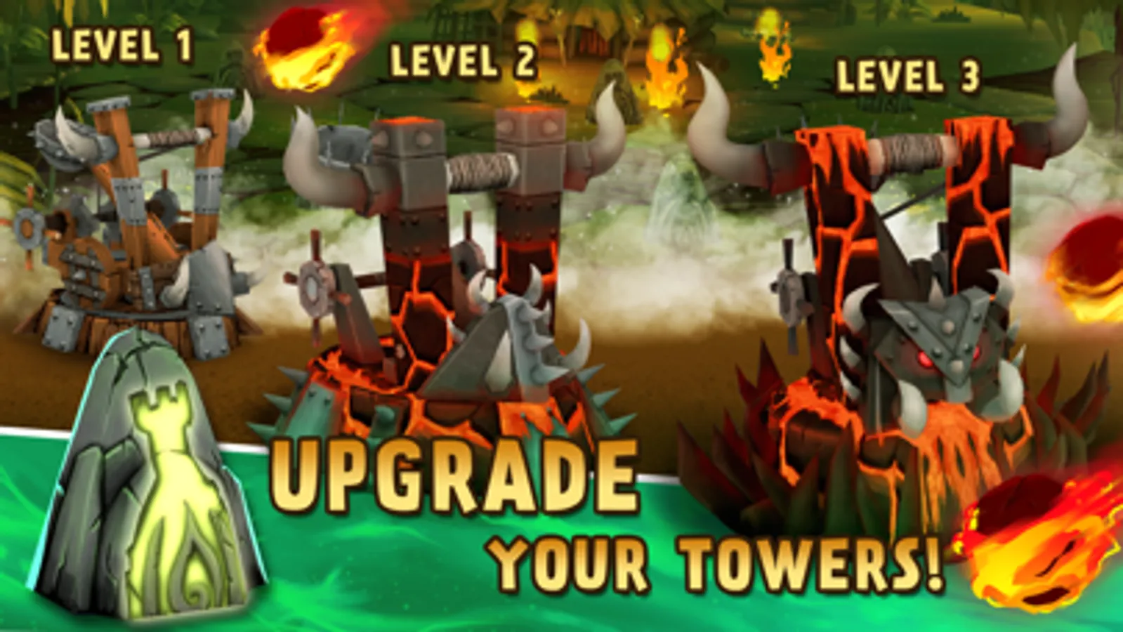 -Grow your defenses: towers, catapults, cannons…