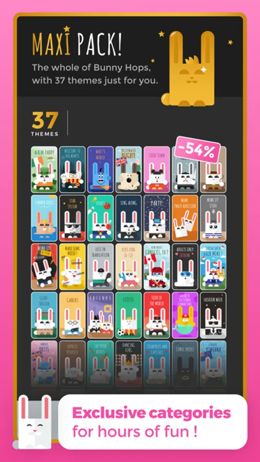 With over 40 different deck themes, "Bunny Hops!" is perfect to play with family and friends. The perfect game for an endless dinner with Grandma, to shake things up before a night out, or for the next family game night!