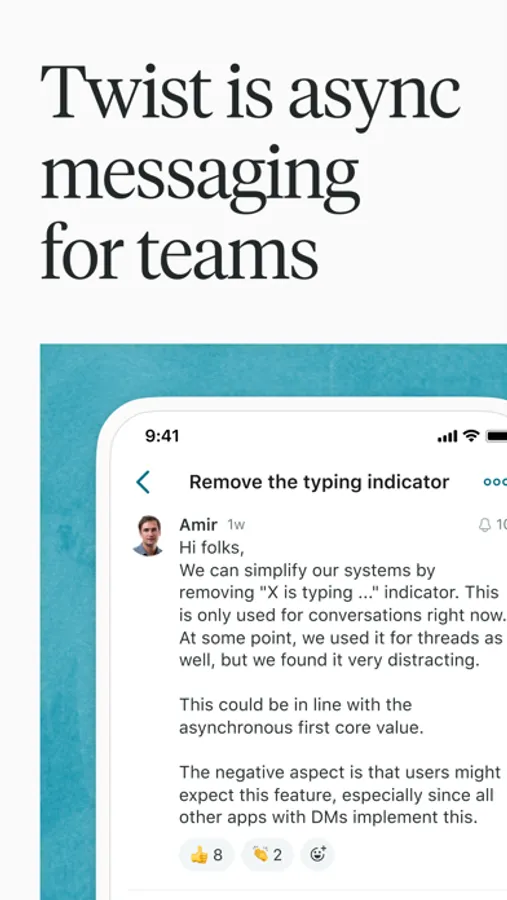 • Twist threads never bury important information in an avalanche of chit-chat (like Slack)