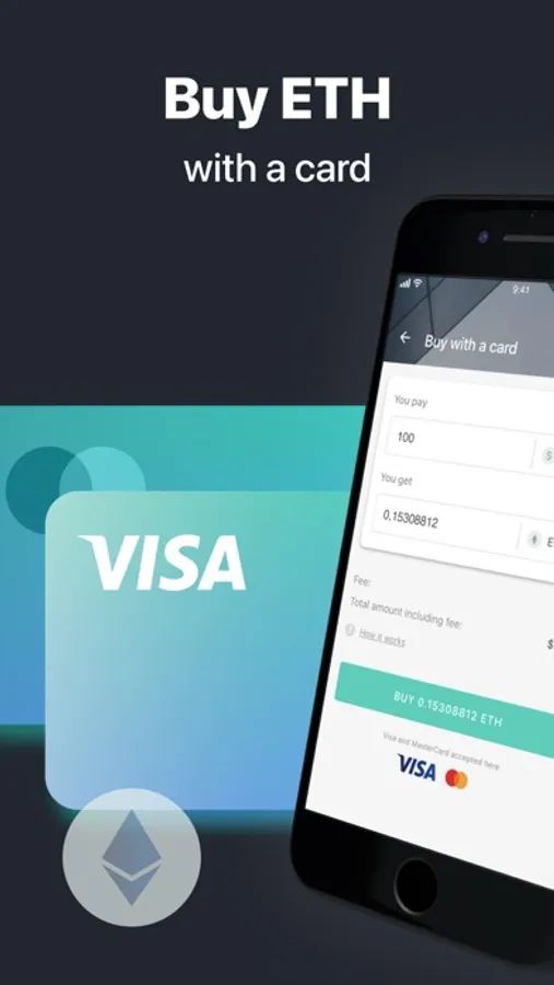 Don’t have any ETH, then buy it right in your mobile phone. You can pay with USD, EUR, GBP or other fiat currencies and get your Ethereum coins instantly. We accept all major credit and debit cards (VISA, MasterCard, etc.) including pre-paid and virtual bank cards.