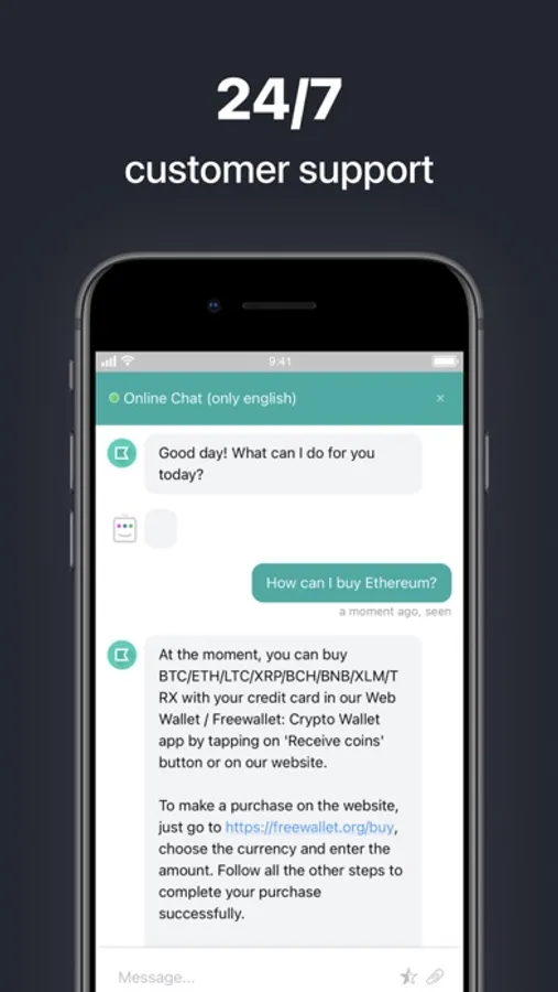 Our support team is working 24/7 ready to assist in any difficult situation regarding the app. The Ethereum wallet is available in 13 languages including German, Spanish, Chinese, French and Russian.
