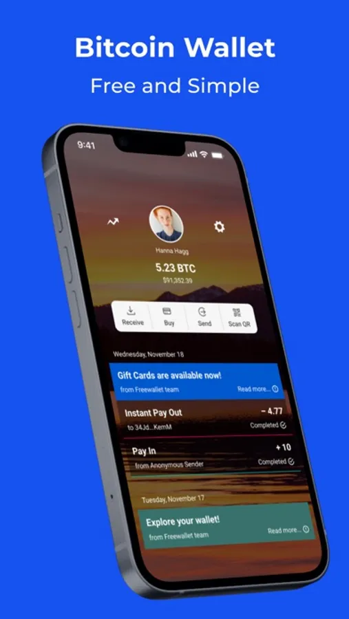 Install the Bitcoin wallet by Freewallet and make secure BTC transactions. Store your money in a free wallet, track the exchange rate, and convert BTC to other coins. It combines the essential features of crypto wallets for both seasoned BTC investors and crypto beginners.
