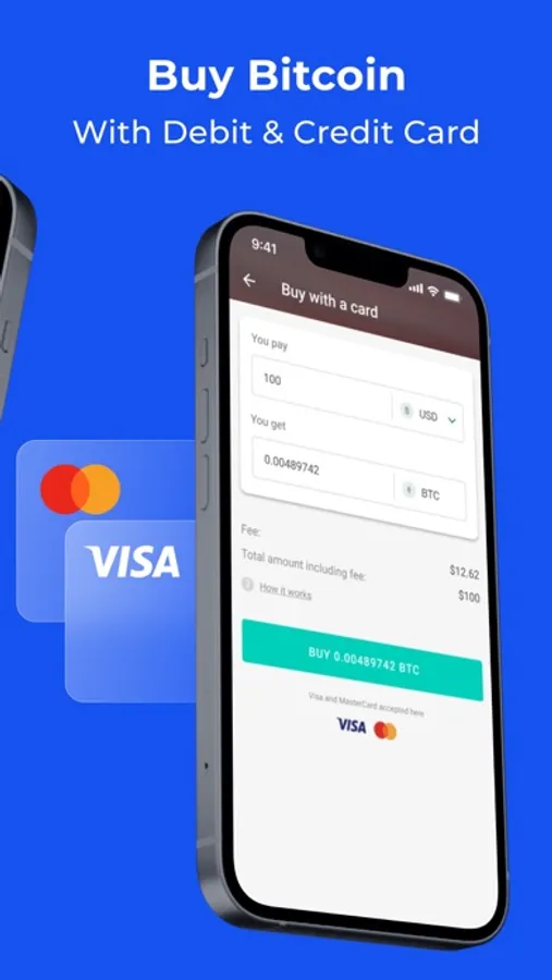 Don’t have any BTC, then buy it right in your mobile phone. You can pay with USD, EUR, GBP or other fiat currencies and get Bitcoins instantly. We accept all major credit and debit cards (VISA, MasterCard, etc.) including pre-paid and virtual bank cards.