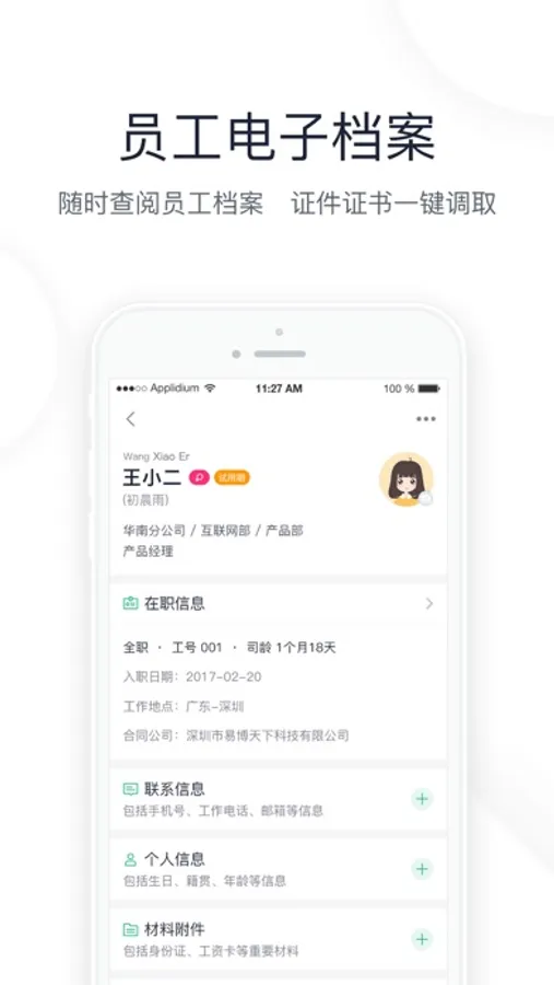 ● 加密云存储,多终端同步,随时随地浏览员工档案资料