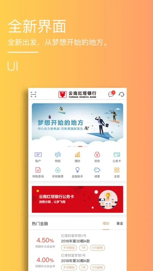 云南红塔银行新一代手机银行,全新开始,从梦想开始的地方出发!