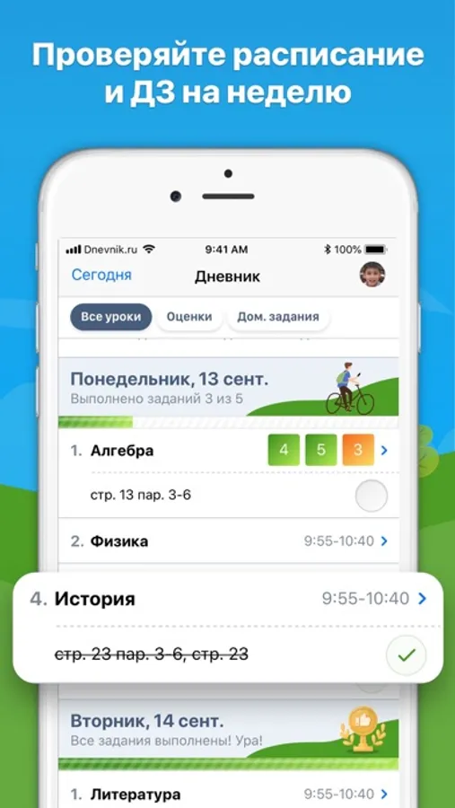 Дневник.ру — мобильное приложение для учеников и их родителей, базовая версия которого дополняет использование сайта, а PRO версия позволяет полностью отказаться от сайта и экономит время.