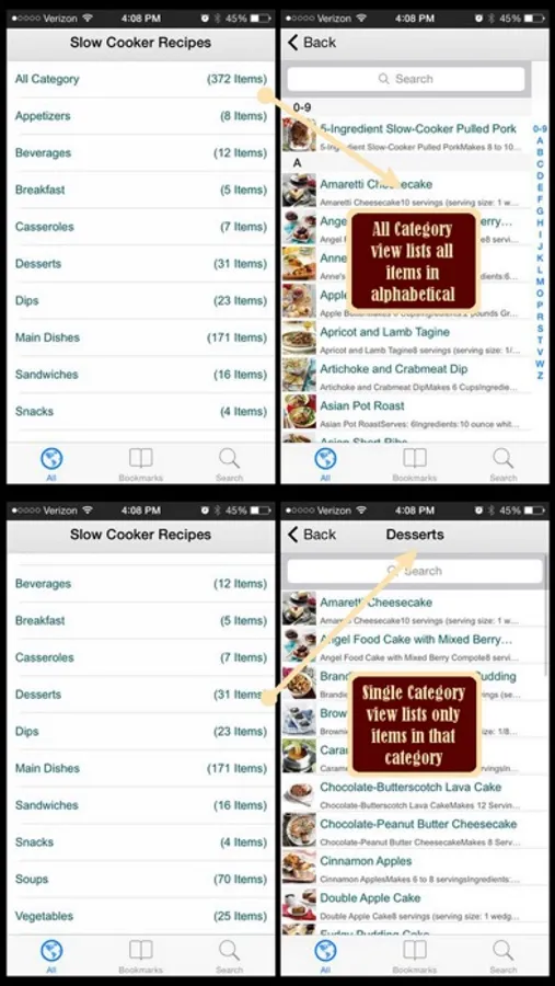 * All Items View to preview all recipes in alphabetical order with thumbnails