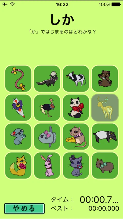 「しりとり」のルールに則り順番にパネルをタップし、タイムを競うゲームです。