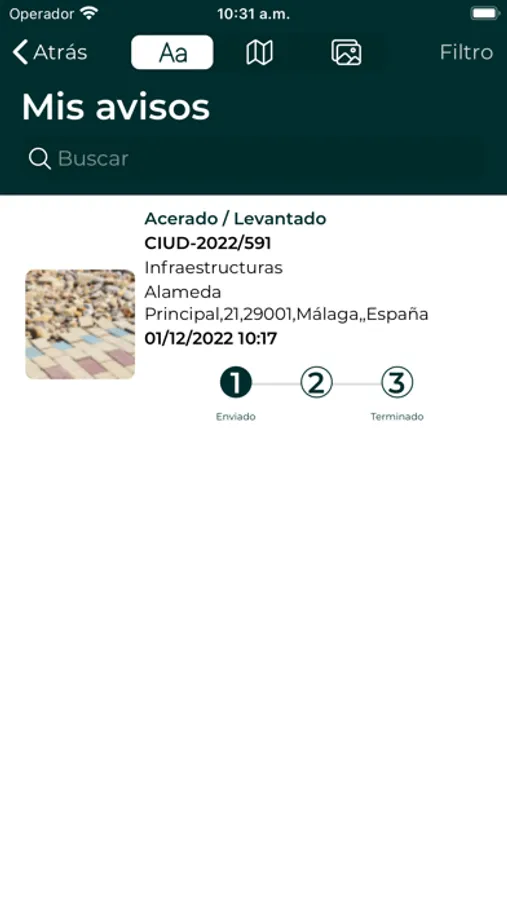Mediante un clic pondrás en conocimiento de la administración las incidencias o deficiencias detectadas en la vía pública. Recibirás notificaciones de los cambios en la tramitación hasta su resolución. En todo momento se podrá ver de manera gráfica y visual la evolución, y comunicar observaciones.