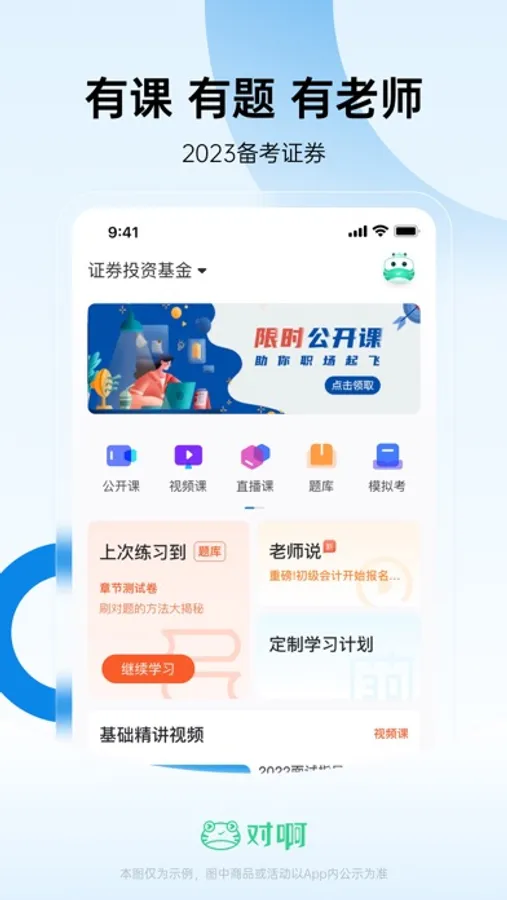 针对2023证券从业资格考试,以2023年最新证券考试大纲为基础,精心录制,适合现在的你。