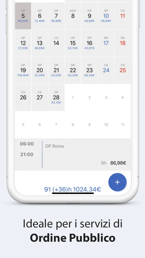 Puoi aggiungere i servizi che svolgi e sapere quanto guadagni tra, ordine pubblico, servizio esterno, compensazione e grazie alla possibilità di aggiungere indennità personalizzata, anche cambio turno, missione, reperibilità, aeronavigazione, volo, pilotaggio, imbarco, buoni pasto (ticket) e altro.