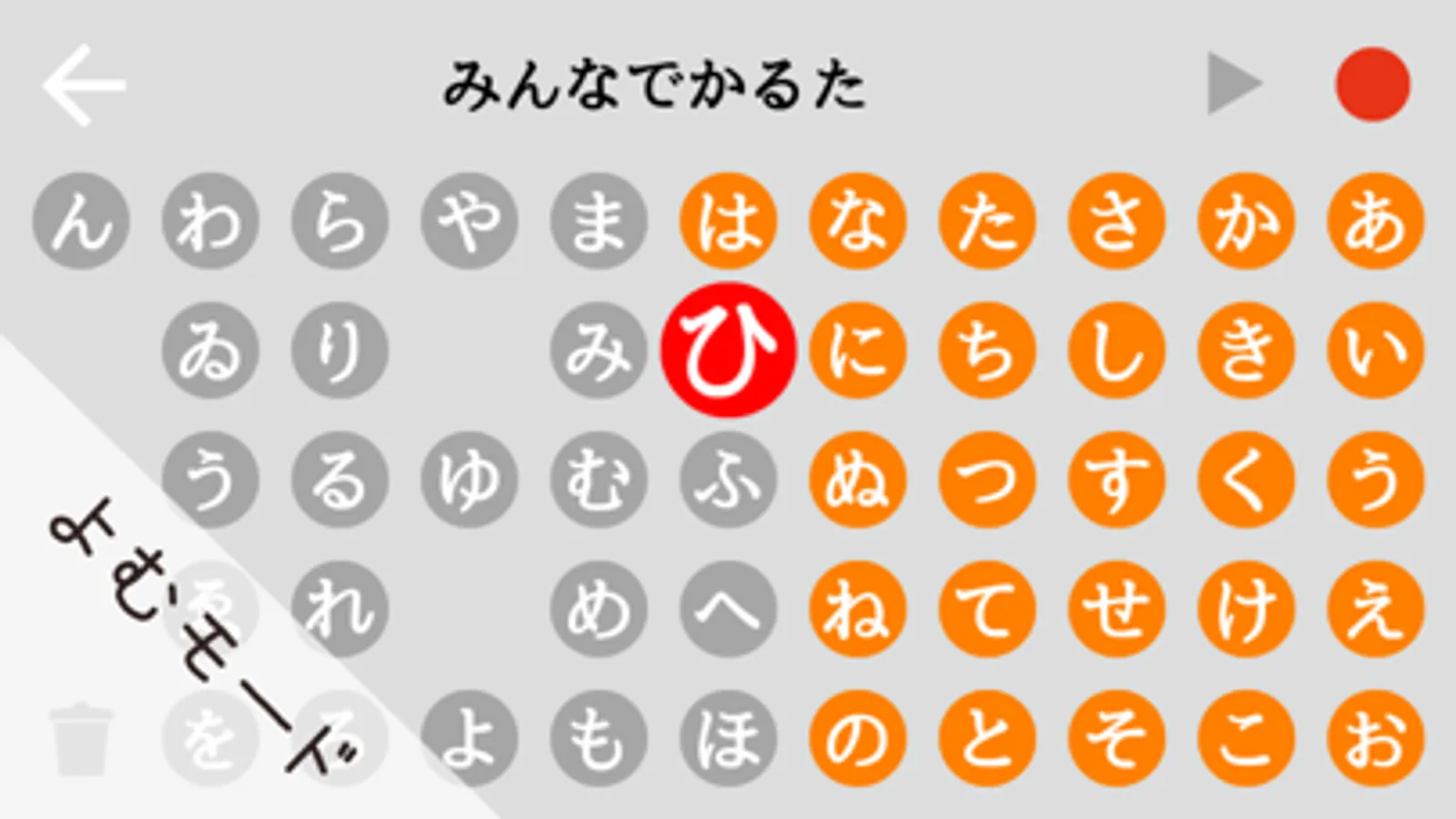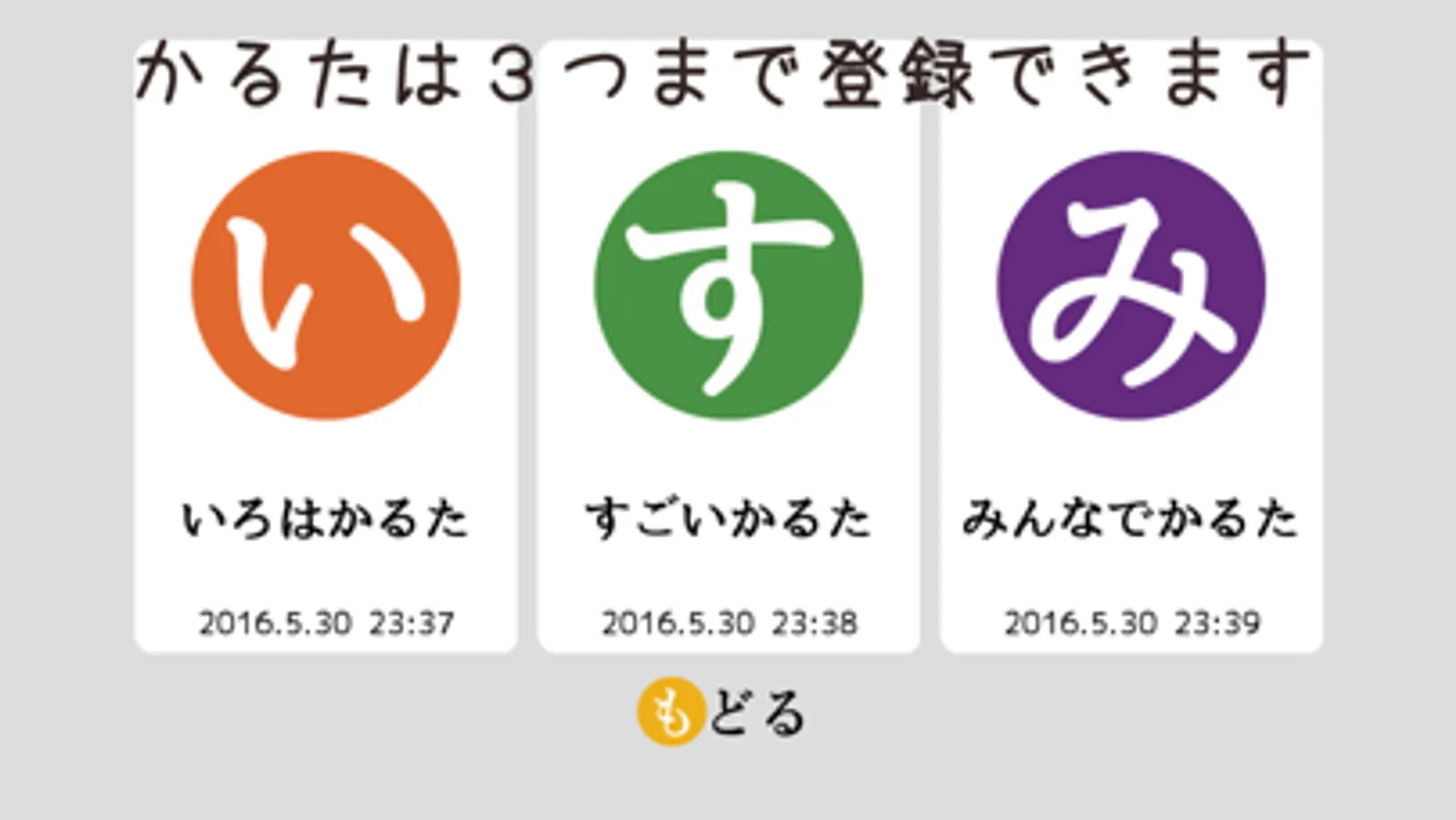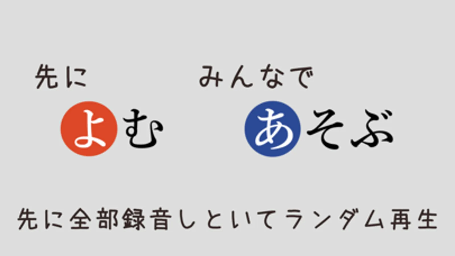 事前に「よむ」モードにてご自身で録音しておいたかるたを「あそぶ」モードにてランダムにかるたを読み上げるアプリです。