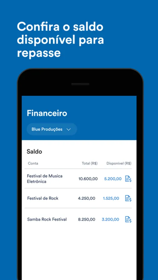 * Aplicativo destinado exclusivamente para organizadores de eventos que utilizam a plataforma Blueticket