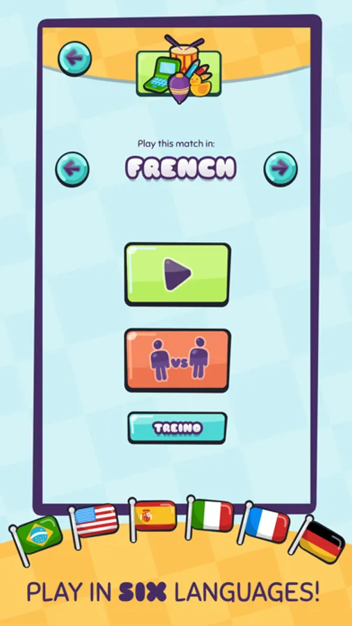 You can play in English or in 5 other languages to train and learn new words: Spanish, Portuguese, Italian, French and German.