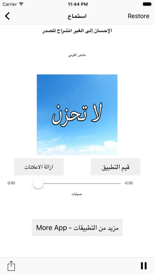 This app is not affiliated in any ways with the writer of the book "عائض القرني - Aidh el karni" or the book itself “ لاتحزن”.Thanks.