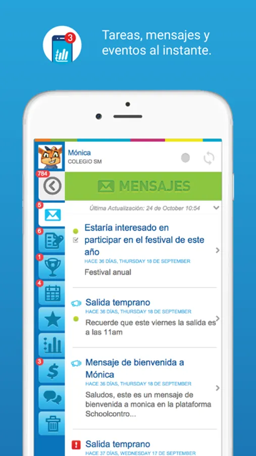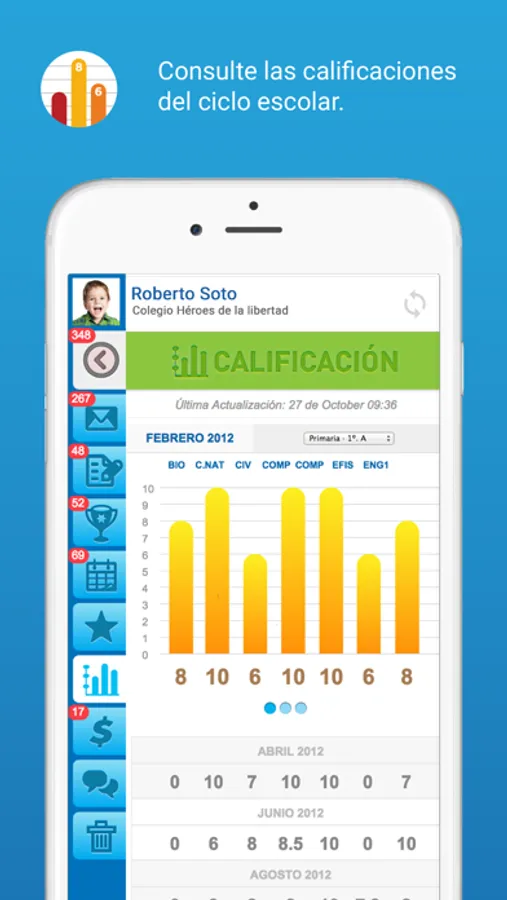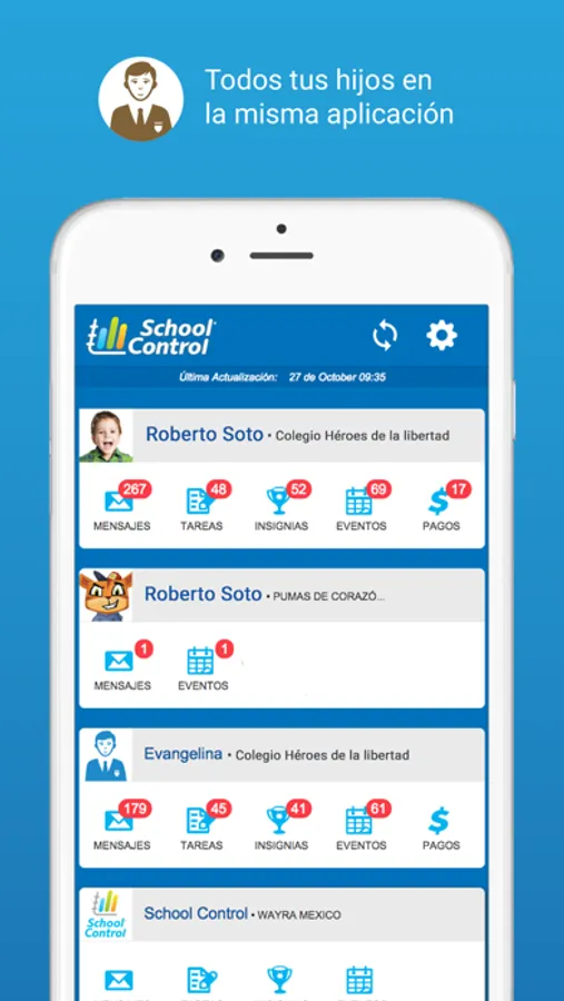 Check grades, student homework, messages, calendar events, collect your children's achievements and make direct school payments in the mobile application with your credit, debit card (Visa, MasterCard and American Express), show the barcode from your cell phone and make school payments at the supermarket and an extensive convenience store network.