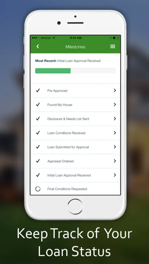 The Pre-Approve Me app allows all 3 parties (home buyer, loan officer, real estate agent) to track the progress of the home loan application process as the Home Buyer meets the milestones and conditions required to get final approval.