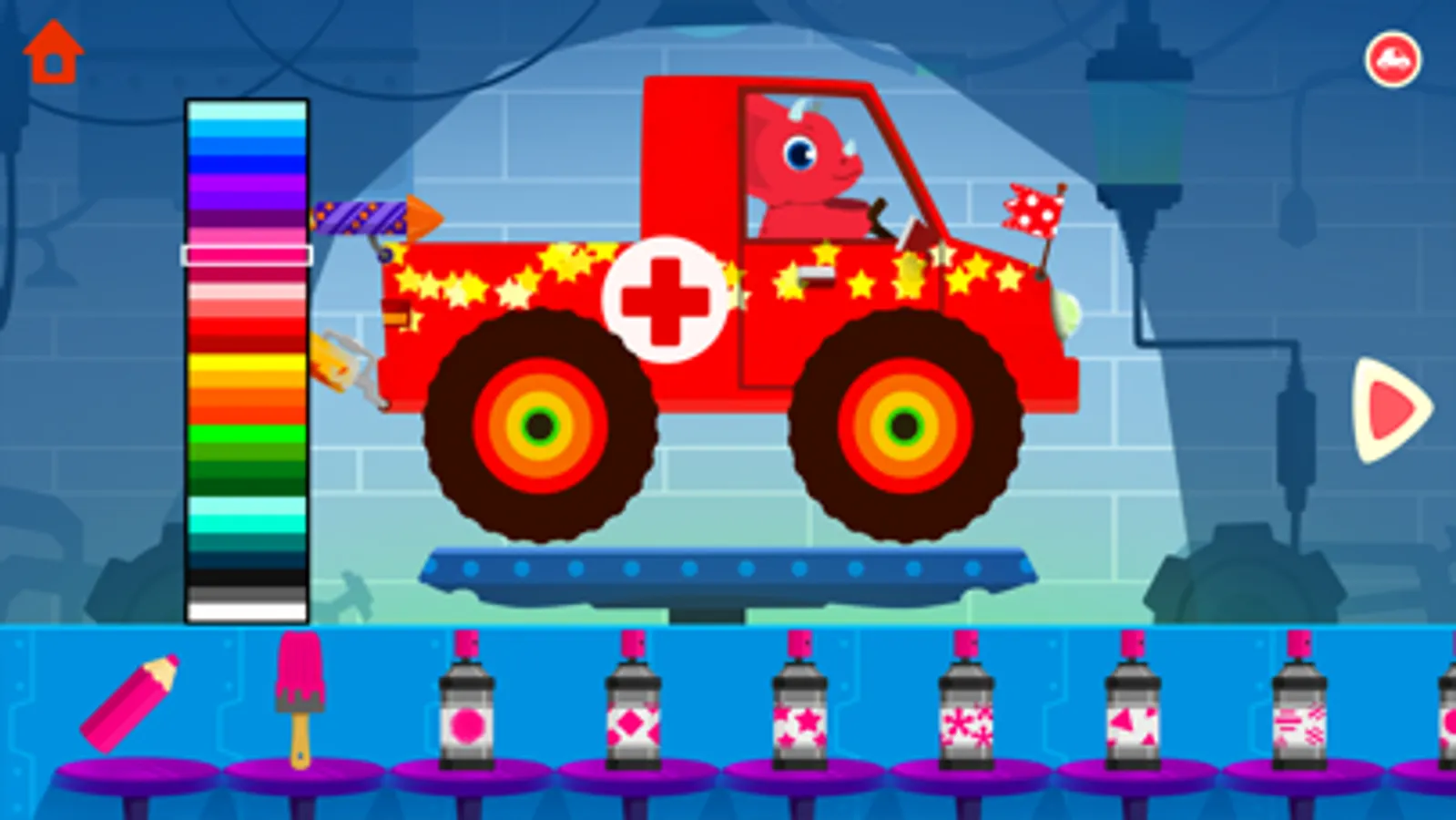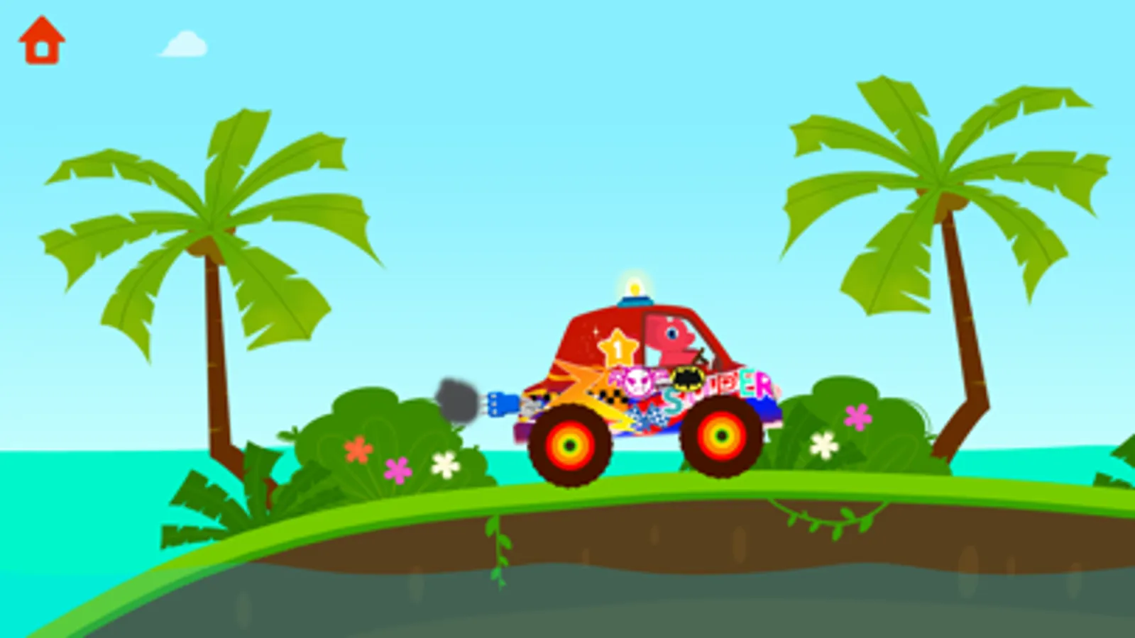 Come! Paint and create your unique car in these amazing car games for kids! Join us in exploring the islands. The little dinosaur will be your driver. He will guide you through the whole adventure in this enchanting world of car games for kids!