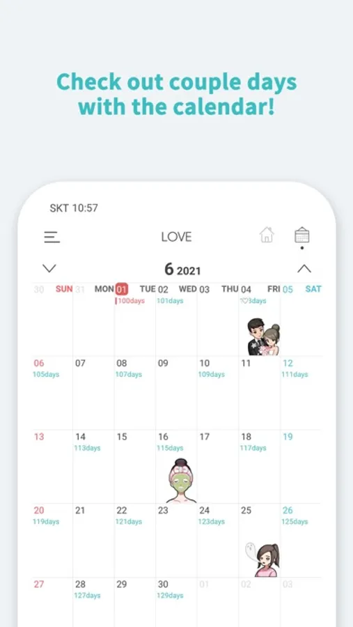 You can confirm the anniversary and D-day by a pretty widget with the couple's photos.