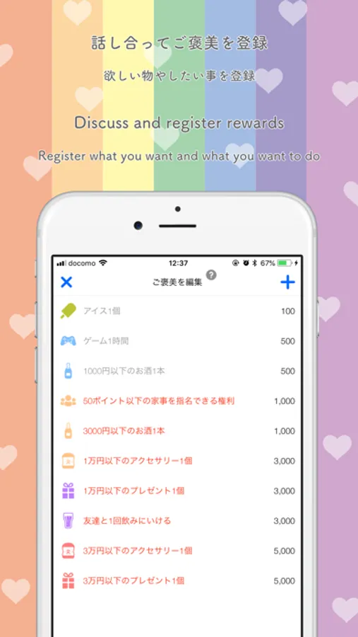 For each housework and reward, you can set points freely.