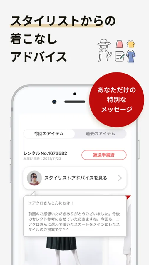 ・スタイリストによるアドバイスが届く