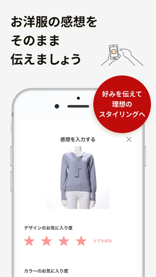 簡単操作で、好みのアイテムや感想を伝えることができます。