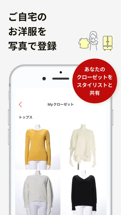 お届けしたコーディネートを手にとりながら、スタイリストからのアドバイスを確認することができます。