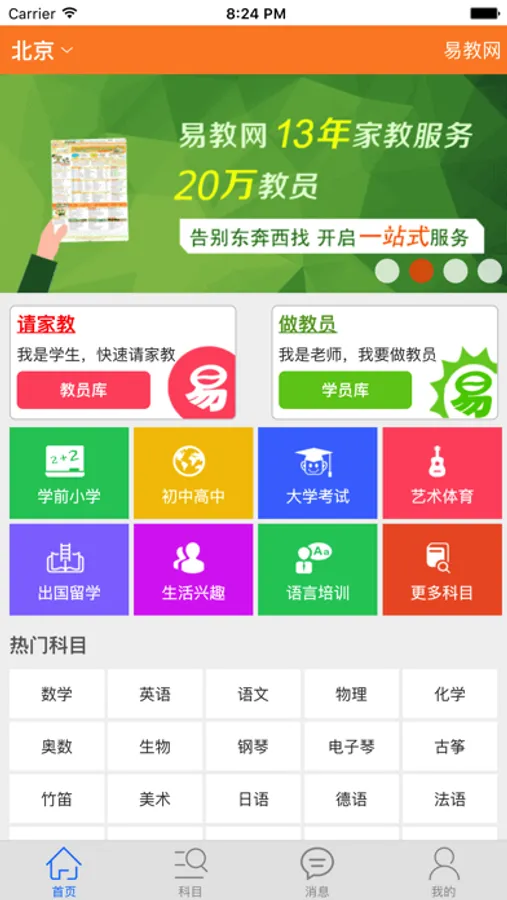 汇聚海量一线好老师和优秀大学生家教,轻松让学霸君上门一对一家教辅导,耐心辅导,讲题库、作业帮您提分,易教网好老师疯狂来袭。