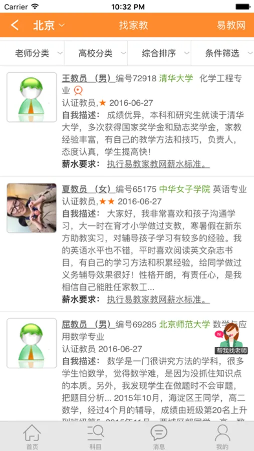 3.请家教:数十万名校师资,在线查询,自主挑选.让你足不出户就找到满意家教老师!