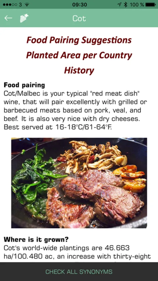 What should I pair with a Pinot Noir? Or a Chardonnay? Apart from suggestions for food pairing, the 200+ Wine Grapes app will also help you by suggesting best serving temperatures.