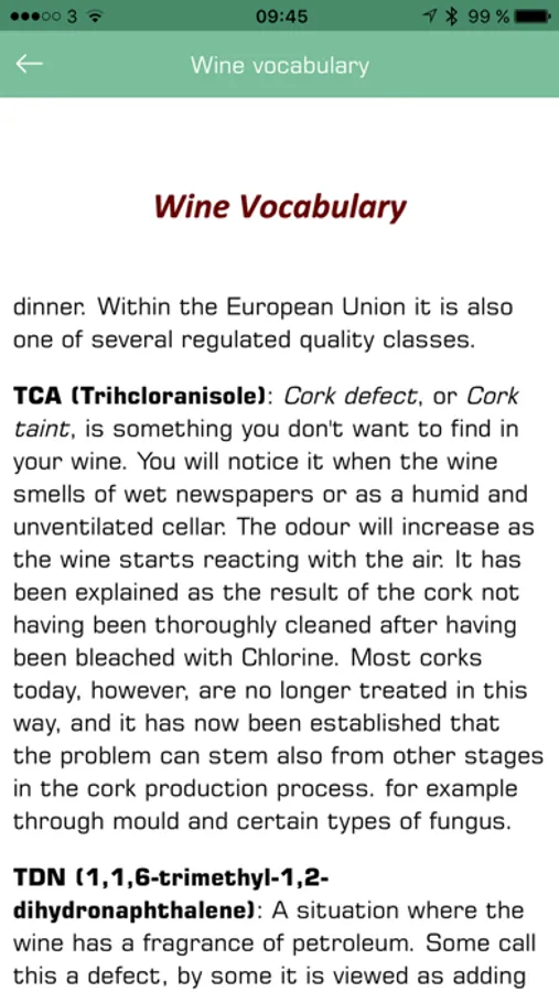 Appassimento, Cork Taint, Malolactic Fermentation, Vin de Paille, etc. There are many wine terms that can seem puzzling. The 200+ Wine Grapes app includes a vocabulary of wine terms to be at your service when you need it.