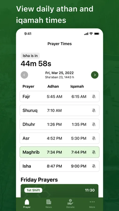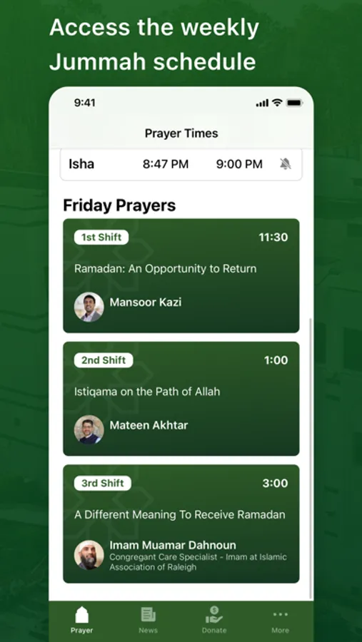 Three shifts of Jummah (Friday) prayers are held in order to make it easy for all to attend the Friday prayers and the late timings of the third shift of Friday prayers are targeted specially for Muslim students to attend prayers after regular school hours.
