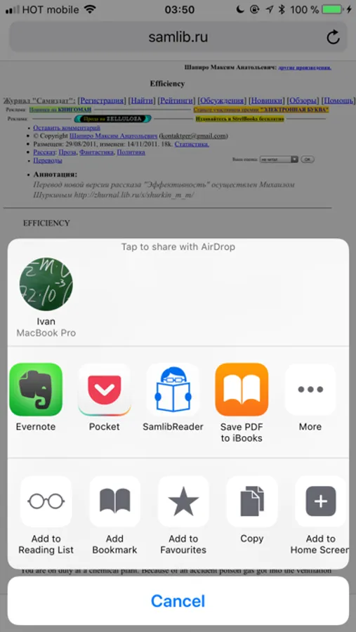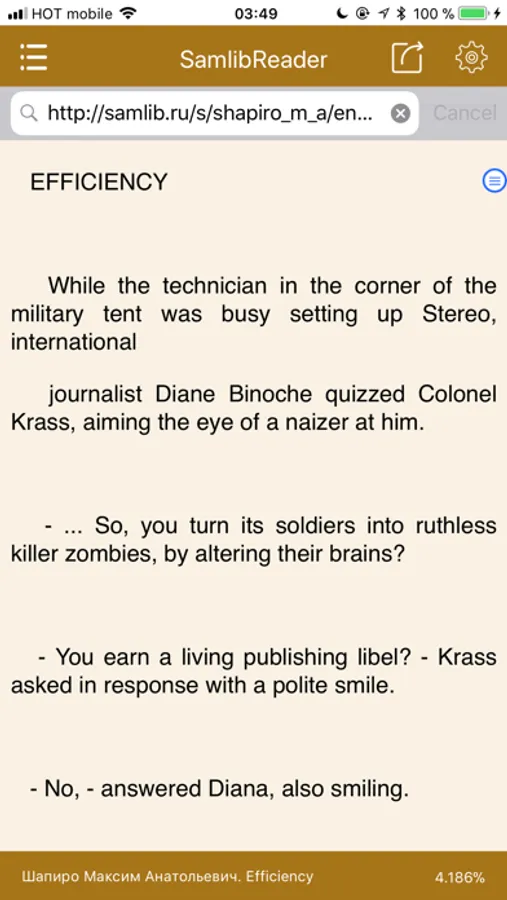 The application is made to read the materials of the site "Magazine Samizdat" samlib.ru