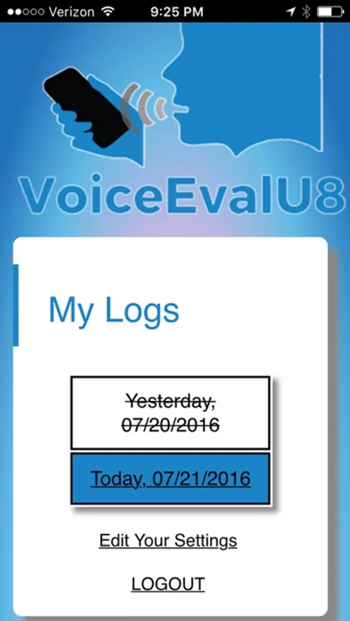 The purpose of the application is to collect voice information from users. The app will prompt users to complete a variety of audio recordings and answer voice-related questions. This information will then be analyzed to determine if potential voice issues exist and to develop a plan for such issues.