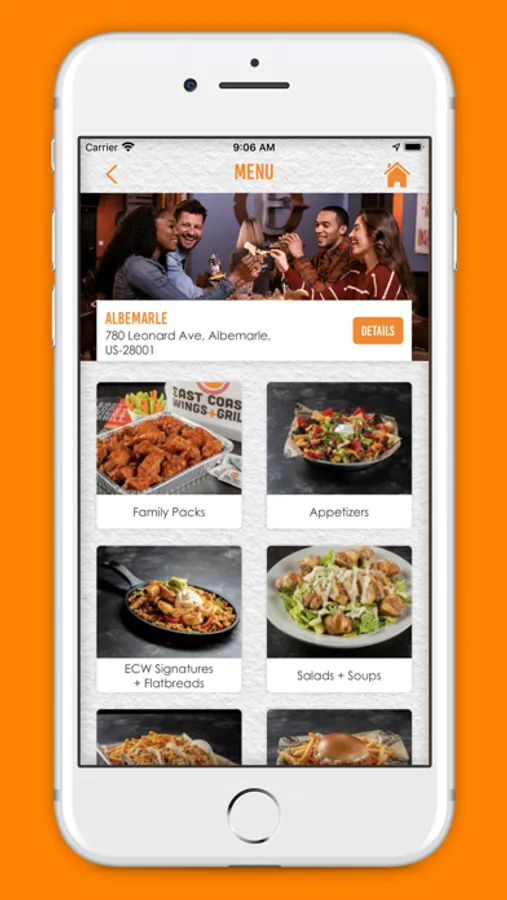 Order East Coast Wings + Grill on the go! Select from a large variety menu including burgers, flatbreads, skillets, salads and 60 flavors of Buffalo style chicken wings that can be mixed in 7 different heat indexes ranging from Mild to Insanity.