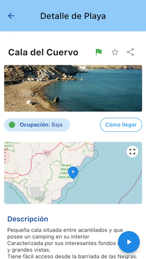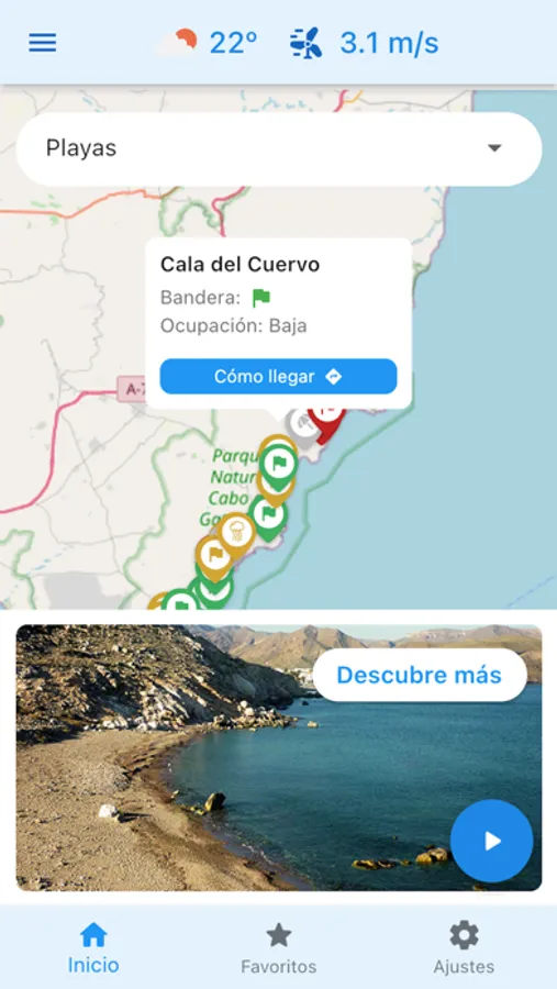 Además, dispondrás en cada una de las playas podrás ver en tiempo real la bandera que ondea. También podrás ver la ocupación estimada en ellas y todos los servicios disponible.