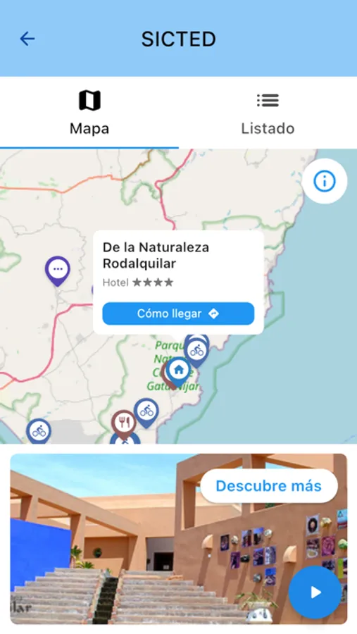 Podrás obtener una recomendación turística en base a tus intereses pudiendo obtener información de todo ello en formato lista y mapa.