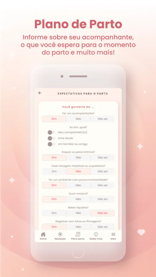 É um registro onde você diz como prefere que ocorra o nascimento, quem gostaria como seu acompanhante e o que espera do pós-parto. É uma excelente forma de conhecer as opções e opinar sobre o que acha melhor para você e seu bebê.