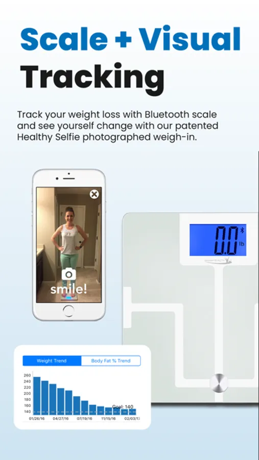 Digital coaching platform with wireless smart scale that measures body and body fat percentage. Patented visual progress report allows you to record a private digital photo of each weigh in. Results are transferred wirelessly via Bluetooth to the incentaHEALTH Smart Scale App on your iOS device. View the visual photo gallery of your progress as you reach your weight loss goals. App provides a daily meal plan and workout routine, plus access to live Health Coaches to answer your weight loss questions. The incentaHEALTH app also integrates with the Health app on your iOS device to allow you to connect your physical activity data from your Apple Watch and load it into the incentaHEALTH app so you can see your progress and earn rewards for increasing your daily activity.